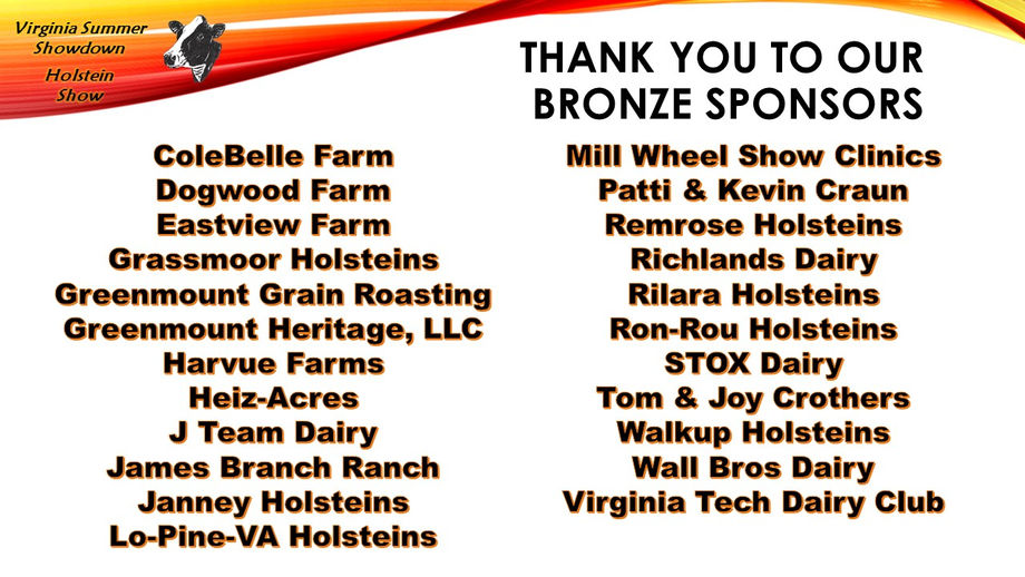 The Virginia Holstein Association would like to say a big THANK YOU to our 2019 Annual Sponsors! The support of our sponsors allows us to continue our shows and programs to promote and celebrate the Registered Holstein Cow!
